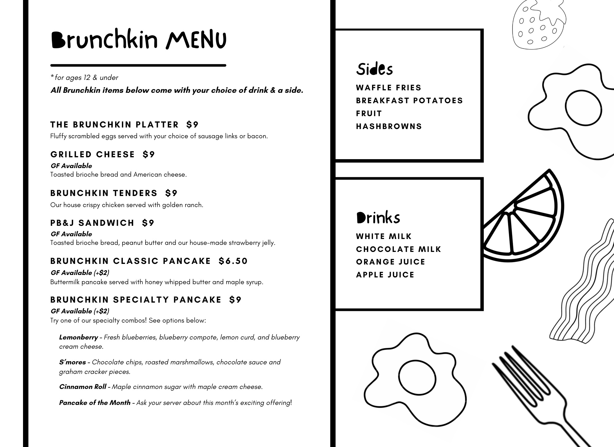 Brunchkin Kids Menu | Brunch It Up Delafield and Milwaukee Wisconsin